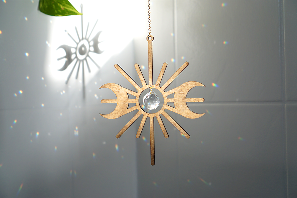 •Fénytörő: Lézervágással készült, ablakba akasztva a beérkező fényt szivárványszerűen szórja szét.