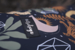 A hátizsák főrésze egyedi mintával ellátott softshell anyag.